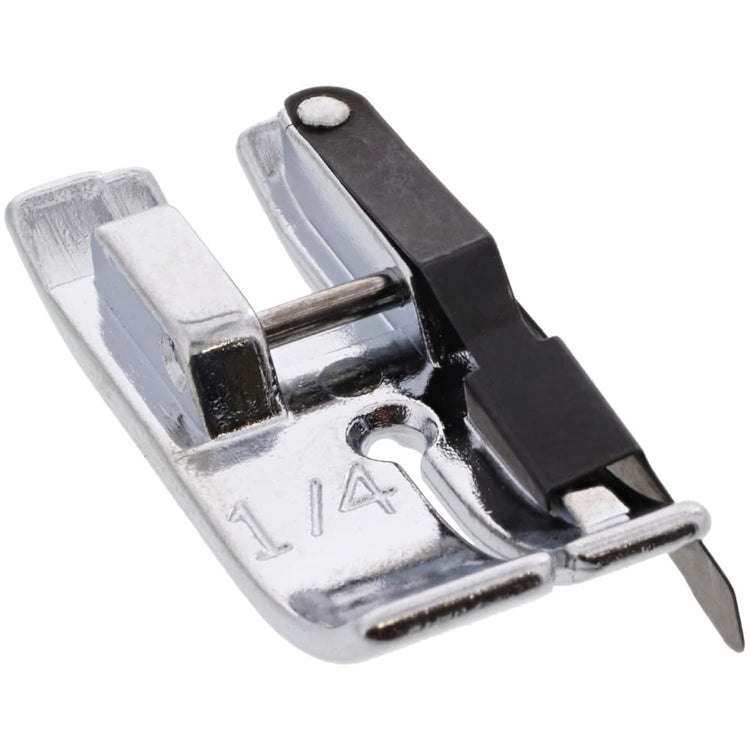 The 1/4" Guide Foot is used for piecing together patchwork with a seam allowance of 1/4" or 6.4mm. With your needle set to center straight stitch, line up the edge of the fabric with the 1/4" Guide Foot, and you will produce a 1/4" seam allowance.