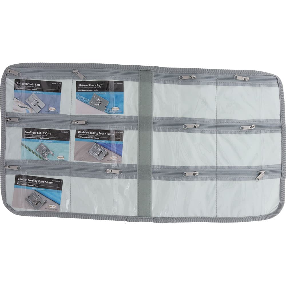 This collection of 17 feet will help you explore new techniques and expand your creative options. These 17 feet come in a convenient carrying case. Kit includes: Walking Foot, Teflon Zipper Foot, Edge Joining Foot, 7-Cording Foot, Felling Foot, Hemmer Foot, Invisible Zipper Foot, Pearl & Piping Foot, Pintuck - 5 Groove Foot, Roller Foot, Bi-Level Foot - Left, Bi-Level Foot - Right, Double-Cording Foot 4-6mm, Double-Cording Foot 7-8mm, Fringe Looping Foot and Ruffler Foot