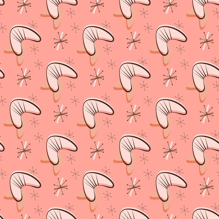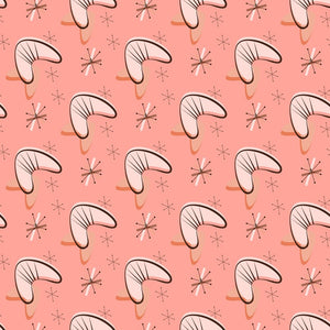 The Pink 1950s Atomic Pattern 8 Fabric is part of the 1950s Atomic Fabric Collection, printed by Sew Creative Fabrics. It is digitally printed on 100% cotton and measures 42-43" wide.