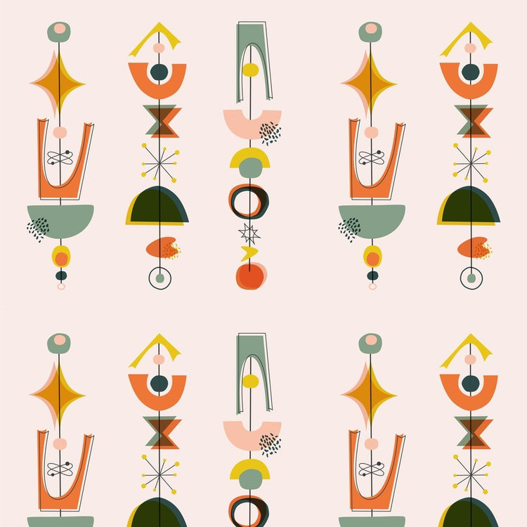 1950's Contemporary Shapes Fabric - Light Pink Details