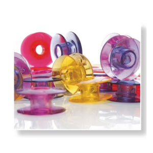 Version 2 has four new and different colored bobbins compared to Version 1.