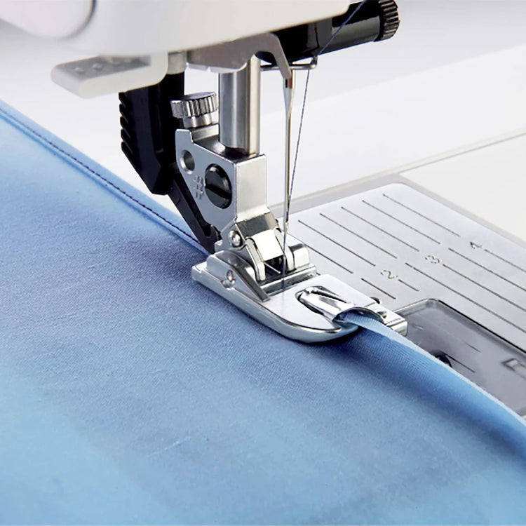 The Rolled Hem Foot makes it easy to finish light to medium-weight fabrics with a clean, narrow hem—no pre-pressing required. It effortlessly rolls the fabric edge as you sew, creating a precise 4 mm hem that's perfect for garments, linens, and home décor projects. Enjoy fast, durable results with a polished look every time!
