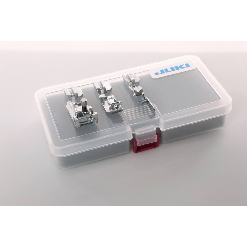 Included in this three-piece set you get a blind stitch foot, an elasticator foot, and a cording presser foot. Use these feet for practical sewing or decorative stitching.