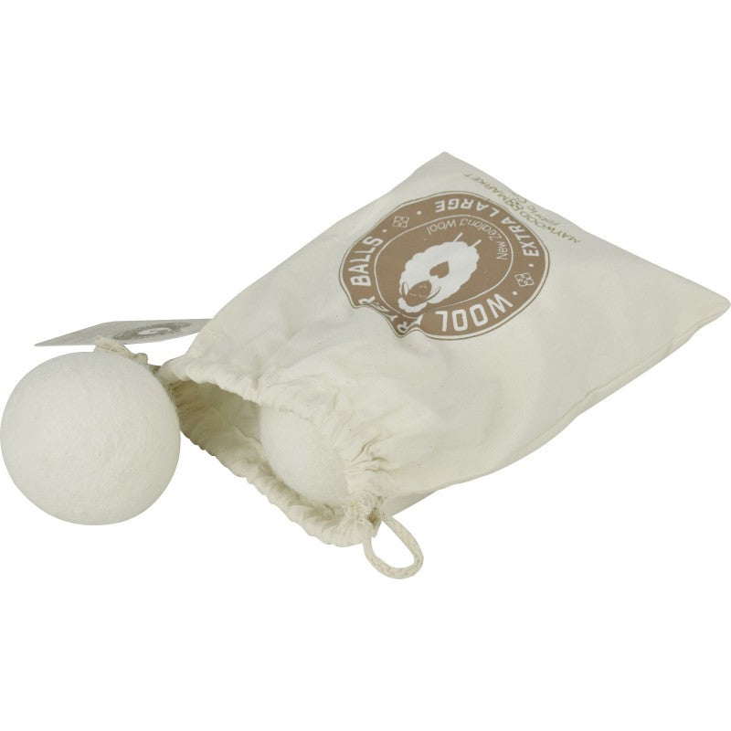 Soften clothes, remove wrinkles, and cut back on drying time with these eco-friendly Dryer Balls from Maywood Market. Made using 100% pure New Zealand wool, these extra-large Wool Dryer Balls are handcrafted with no fillers or artificial centers. Toss all four balls into the dryer to remove wrinkles and save on drying time-without the use of harsh chemicals! If you want to add fragrance to your laundry, try adding a few drops of your favorite essential oil to each ball; allow the oil to absorb and dry before using. Extra-large Wool Dryer Balls come four to a pack and are packaged in a small draw-string bag. Choose from two colors, white or black.