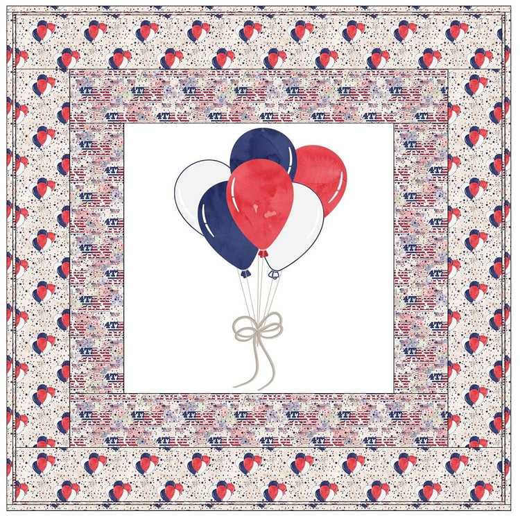 The 4th of July Balloons Wall Hanging includes everything that you need to make the quilt - the instructions and a total of 4 yards of fabric and a 23" panel. It has two borders and is finished with a flange binding. Batting is sold separately. The finished size of this quilt is 42" x 42".
