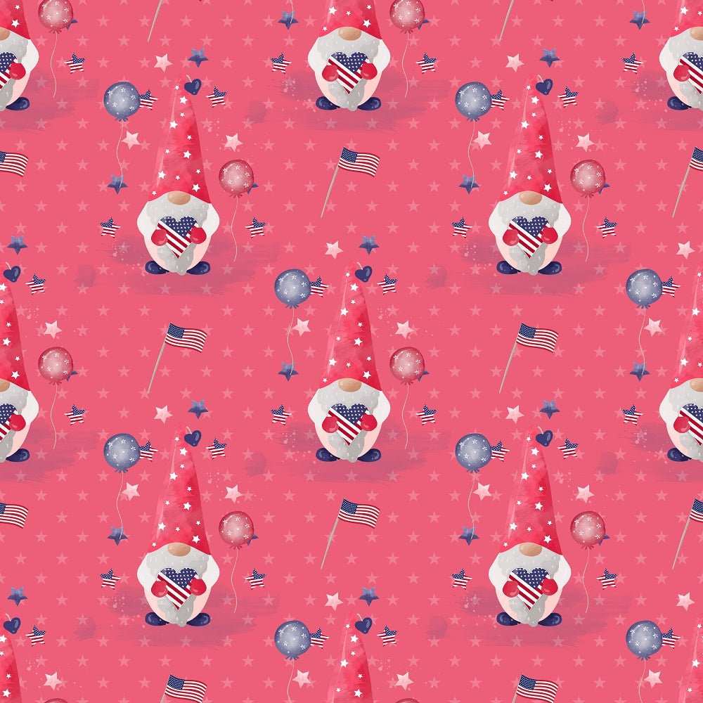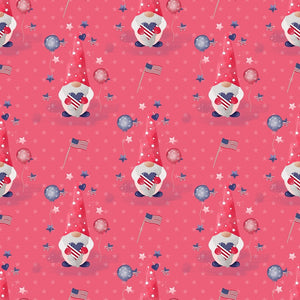 The Red 4th of July Gnomes on Patriotic Elements Fabric is part of the 4th of July Gnomes Fabric Collection, printed by Sew Creative Fabrics. It is digitally printed on 100% cotton and measures 42-45" wide.
