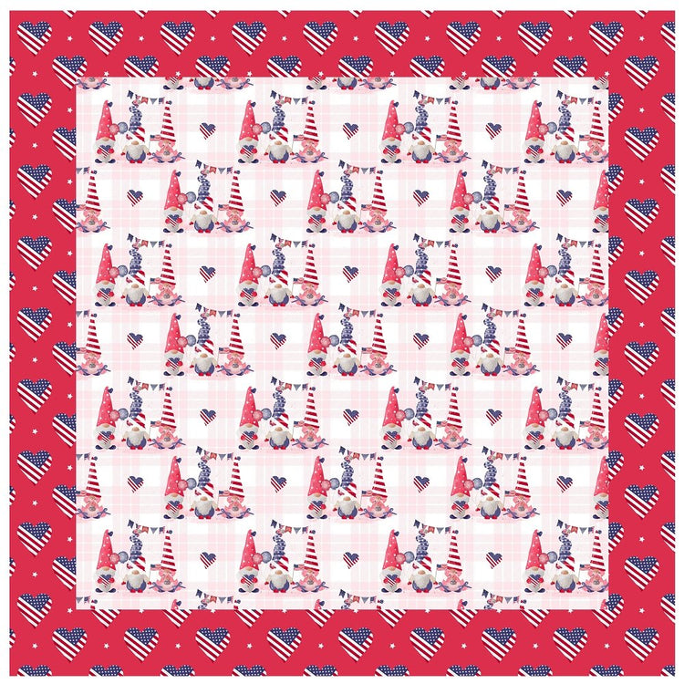 4th of July Gnomes on Plaid Fabric - Red