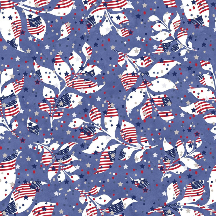The 4th of July Leaves Fabric is part of the 4th of July Fabric Collection, printed by Sew Creative Fabrics. It is digitally printed on 100% cotton and measures 42-45" wide.