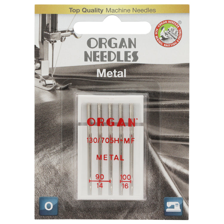Organ's Metal Needles are intended for use with metallic thread. Create eye-catching, decorative topstitches with Organ's Metal Needles. The 130/705H needle system is compatible with most home sewing machines. Please consult your sewing machine's instruction manual for compatible needles. This 5pk of Organ Metal Needles contains assorted sizes 90/14 x3 and 100/16 x2.