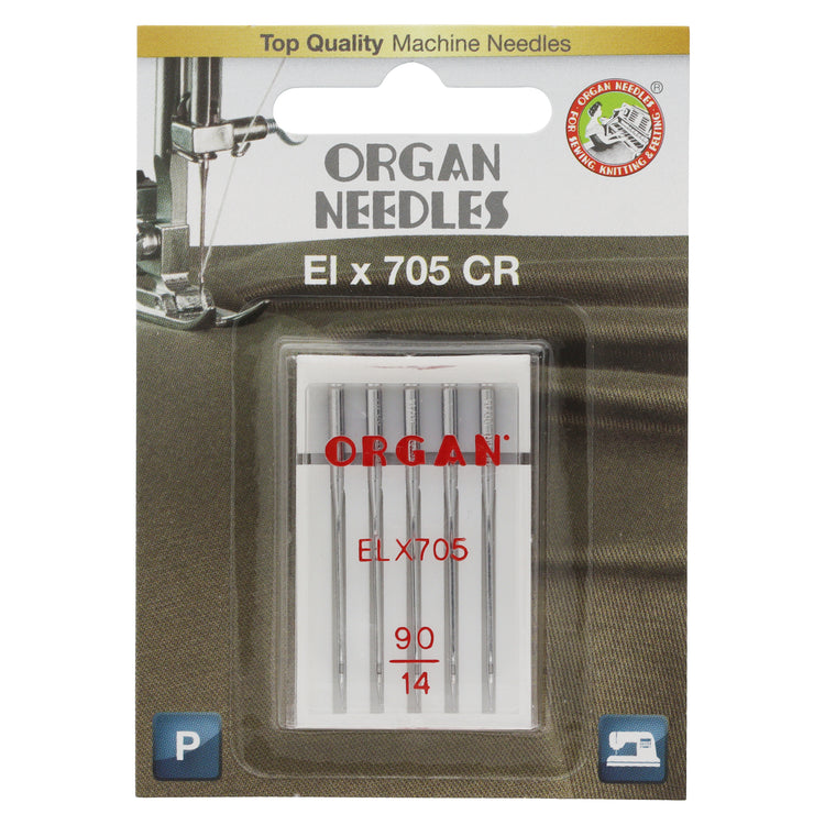 Organ's ELX705 Needles are specially designed for use with serger/overlocker and cover stitch machines. The ELx705 needle system is compatible with most home serger machines. Please consult your sewing machine's instruction manual for compatible needles. This 5pk of Organ Serger Needles is available in sizes 90/14, and assorted sizes 80/12 x2 and 90/14 x3.
