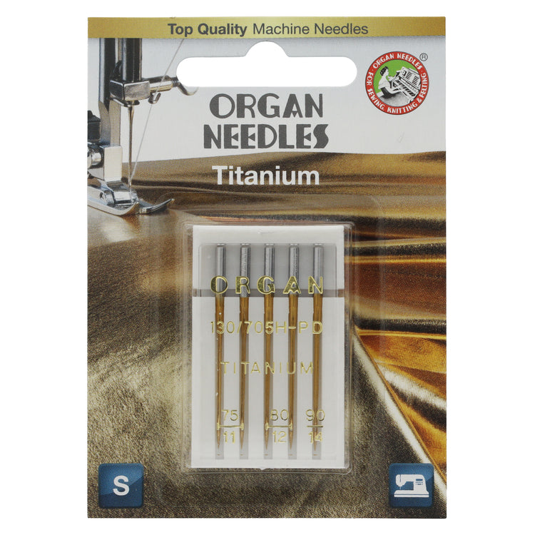 Organ's Titanium Needles are a must-have for dense embroidery as well as sewing on thick fabrics. The 130/705H needle system is compatible with most home sewing machines. Please consult your sewing machine's instruction manual for compatible needles. This 5pk of Organ Titanium Needles contains assorted sizes 75/11 x2, 80/12 x2, and 90/14 x1.