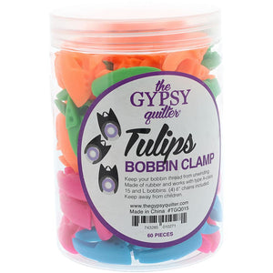 With this 60 piece set of Tulip Clips you no longer have to worry about tangled bobbins! These functional rubber clamps can grip bobbins from full to almost empty. Compatible with Type A (Class 15), Type L, and Type M bobbins.