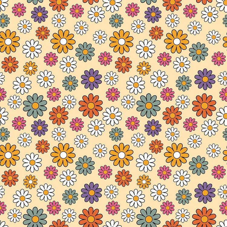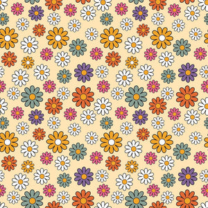 The 70s Retro Floral Allover Fabric is part of the 70s Retro Floral Fabric Collection printed by Sew Creative Fabrics. Digitally Printed on 100% cotton.