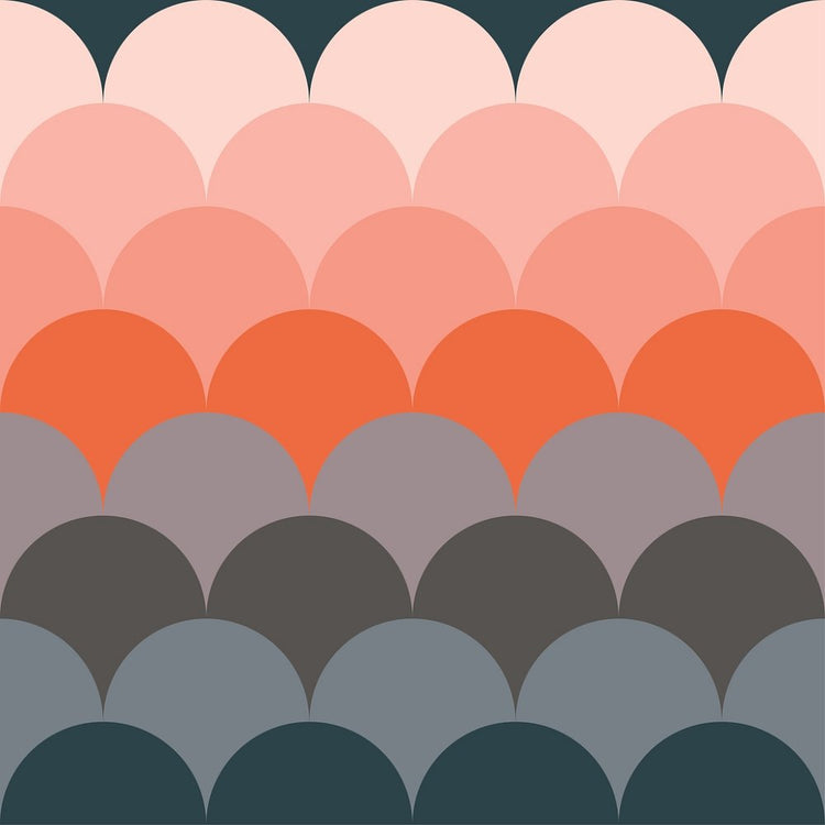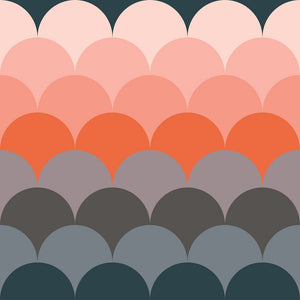 The 70's Retro Scallop Fabric is part of the Retro Fabric Collection, printed by Sew Creative Fabrics. It is digitally printed on 100% cotton and measures 42-45" wide.