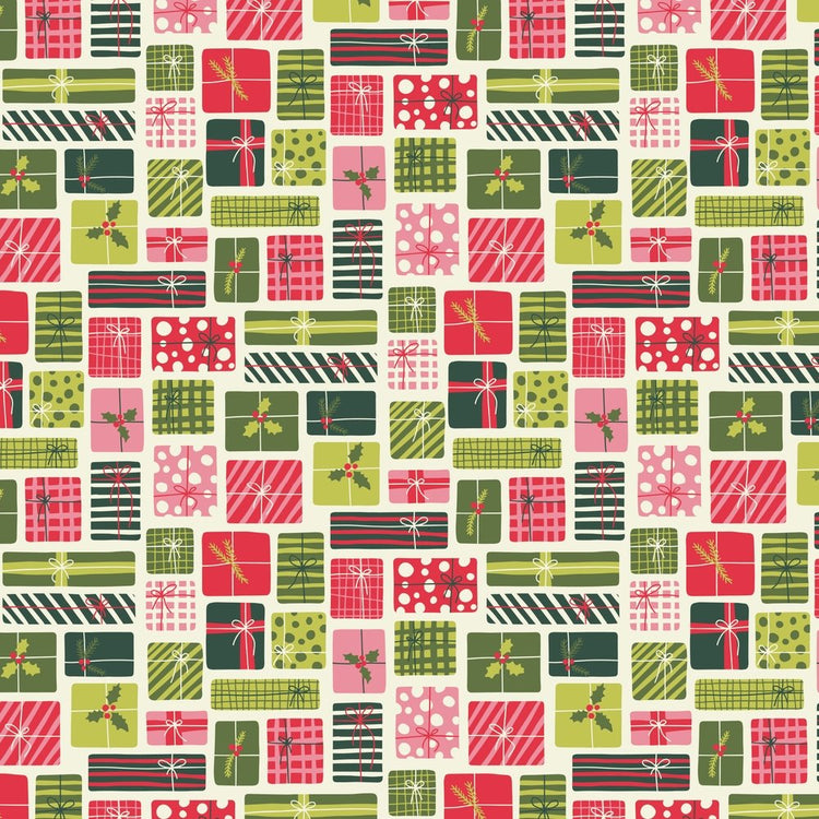 70's Whimsical Allover Gift Boxes Fabric - Beige