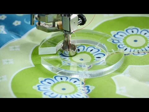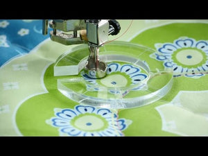 This foot allows you to sew along longarm quilting rulers to create decorative quilt designs such as lines, feathers, circles etc. Any acrylic quilting rulers with a 1/4" thickness can be used. The height of the sole of the foot makes it possible to quilt along all the edges of these rulers which is of utmost importance especially with circles. With this technique the feed dog is lowered and the fabric with the acrylic ruler is guided manually with the base of the foot resting against the edge of the ruler. The height of the foot can be adjusted to match the fabric thickness individually so that the fabric can be moved smoothly and without getting stuck.