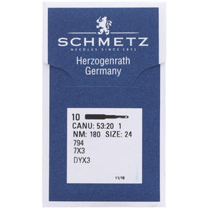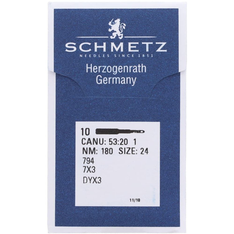 Schmetz 7x3 (DYx3) Needles is a pack of ten needles in a paper envelope.