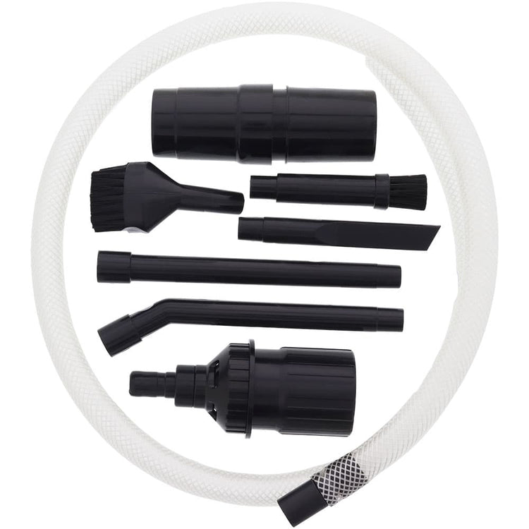 Easily clean your sewing machine, embroidery machine, serger, or long arm! This eight-piece, micro vacuum attachment kit converts most vacuums, with a hose, into a micro vacuum. Clean those hard-to-reach places. Easily remove lint and crumbs from tiny crevices in sewing machines, keyboards, automobiles, and more. Keep your equipment dust-free to prevent it from malfunctioning. Each kit includes a connector, adapter, 35-inch hose, straight extension, curved extension, crevice tool, round brush and oval brush. This Vacuum Attachment Kit accomodates a 28 mm or 32 mm vaccuum hose.