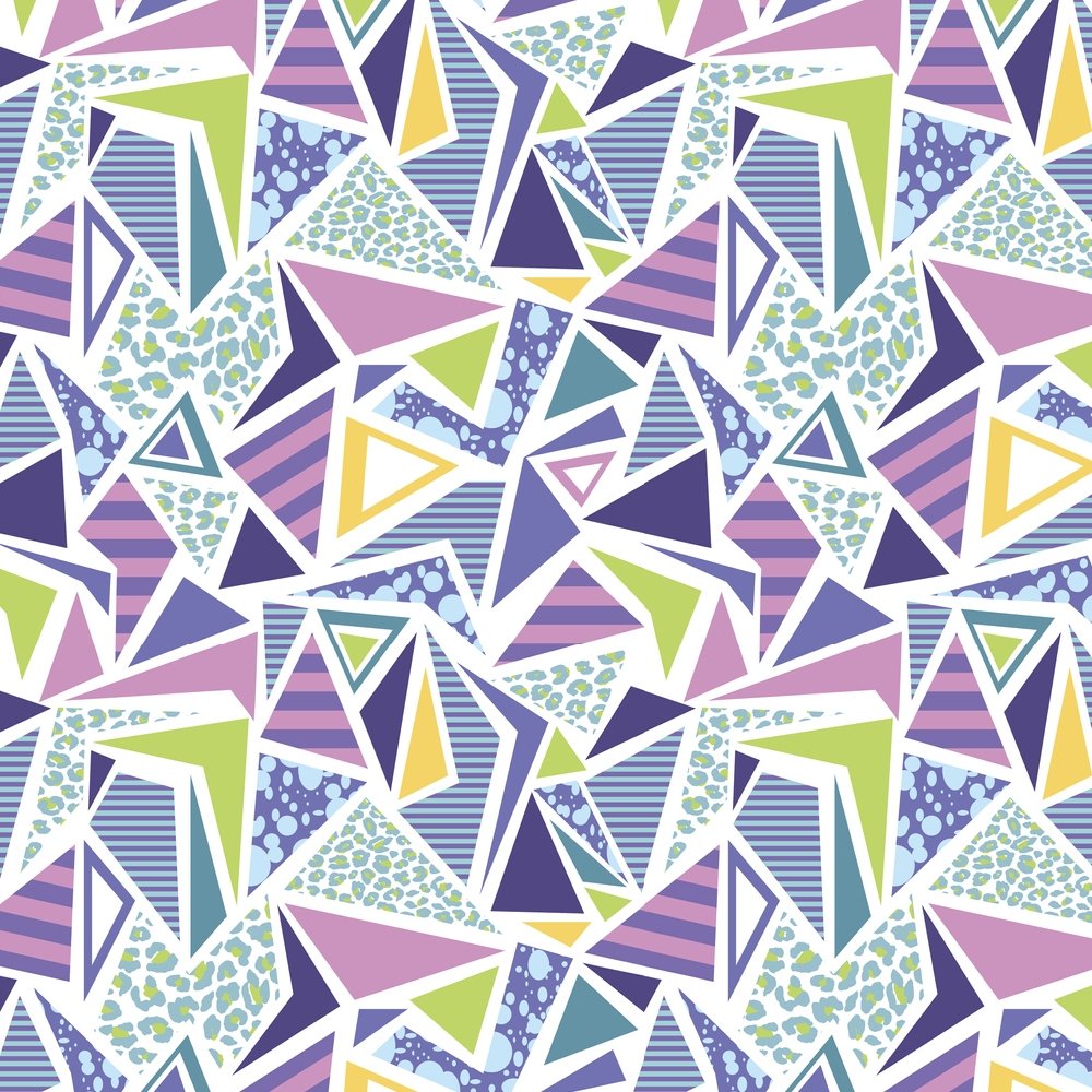 The Purple & White 80's Triangle Fashion Fabric is a part of the Retro Fabric Collection printed by Sew Creative Fabrics. Digitally Printed on 100% cotton and measures 42-43" wide.