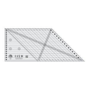 Designed by Erin Underwood, this Diamond Dimensions Ruler allows you to cut chevrons, half diamonds, quarter diamonds and regular diamonds. Equipped with Creative Grid's exclusive grip, this ruler slides easily on fabric yet stays in place when pressure is applied. Use the included instructions or scan the QR code to view a video demonstration. Made in the USA.