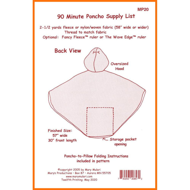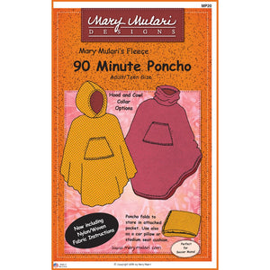 Stay warm and dry in this hooded or cowl neck fleece 90 Minute Poncho Pattern by Mary Mulari Designs, perfectly sized for adults and teens. Featuring a front hand warmer pocket and a back pocket for storing the poncho when not being worn. Create your own personalized 90 Minute Poncho with just 2.5 yds of fleece (or water repellant) fabric!
