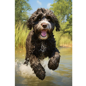 A Dog's Day Out Portuguese Water Dog Fabric Panel