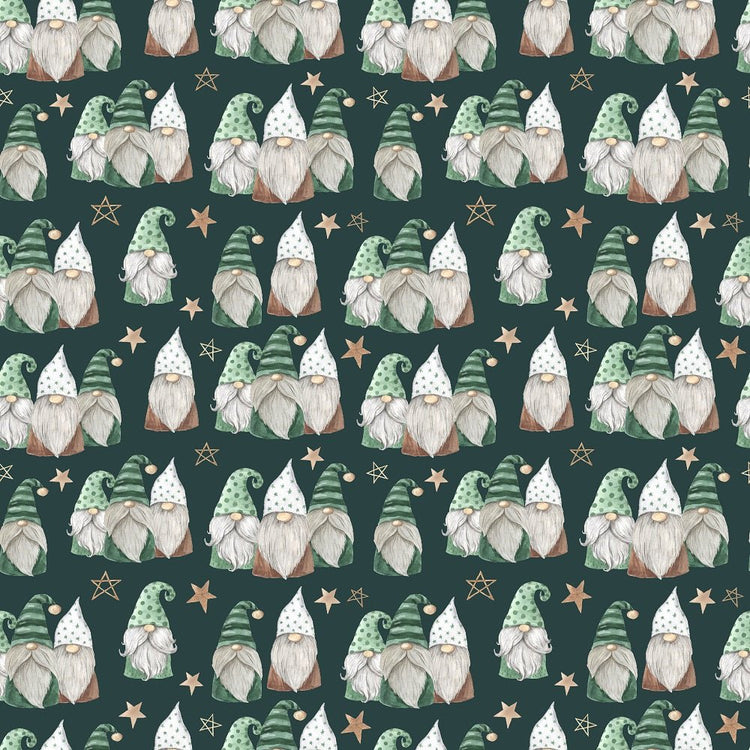 A Nordic Christmas Gnomes Fabric - Dark Green