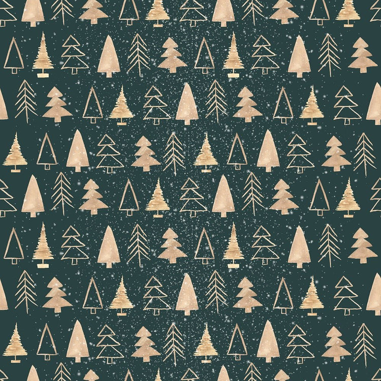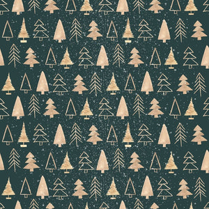 A Nordic Christmas Gold Trees Fabric - Dark Green