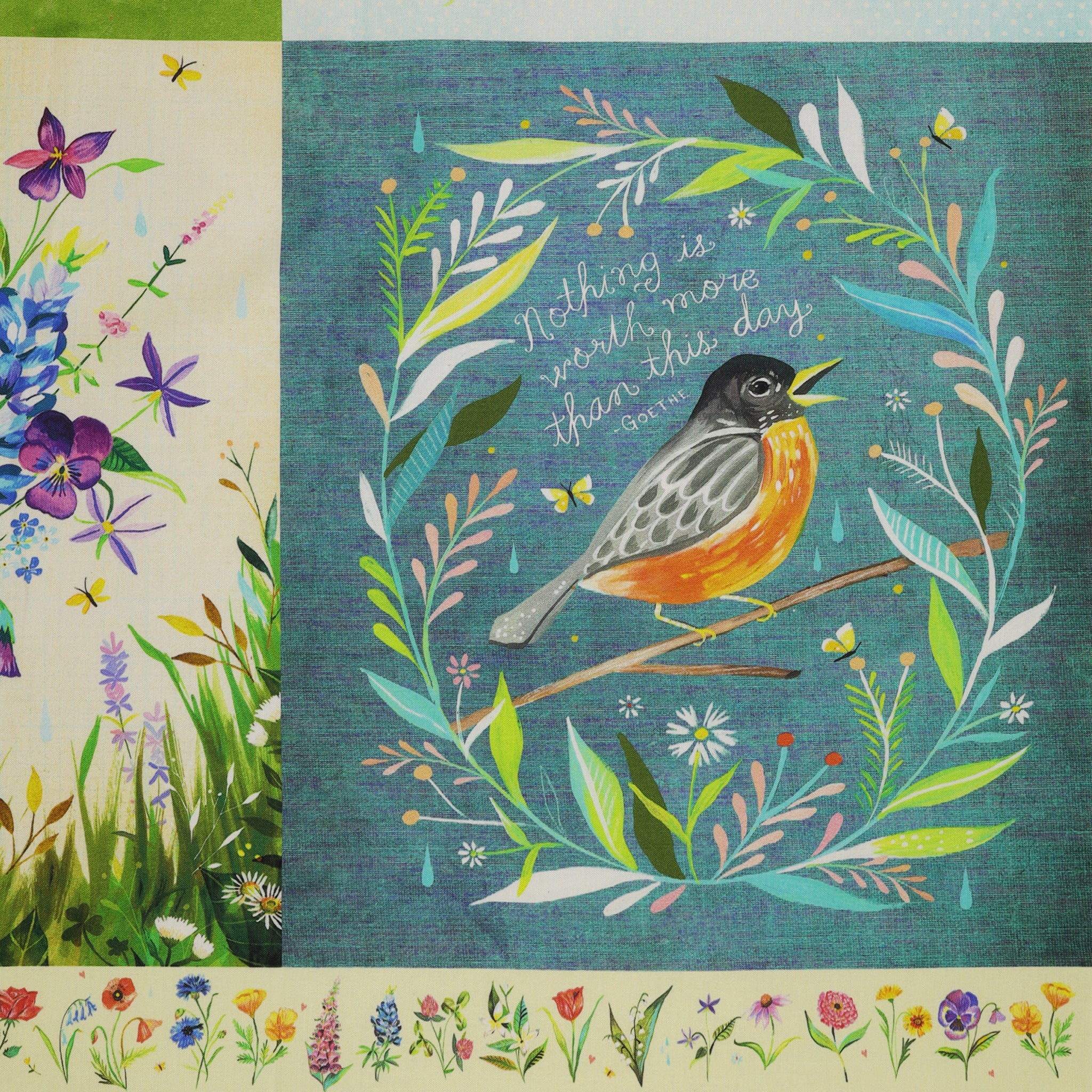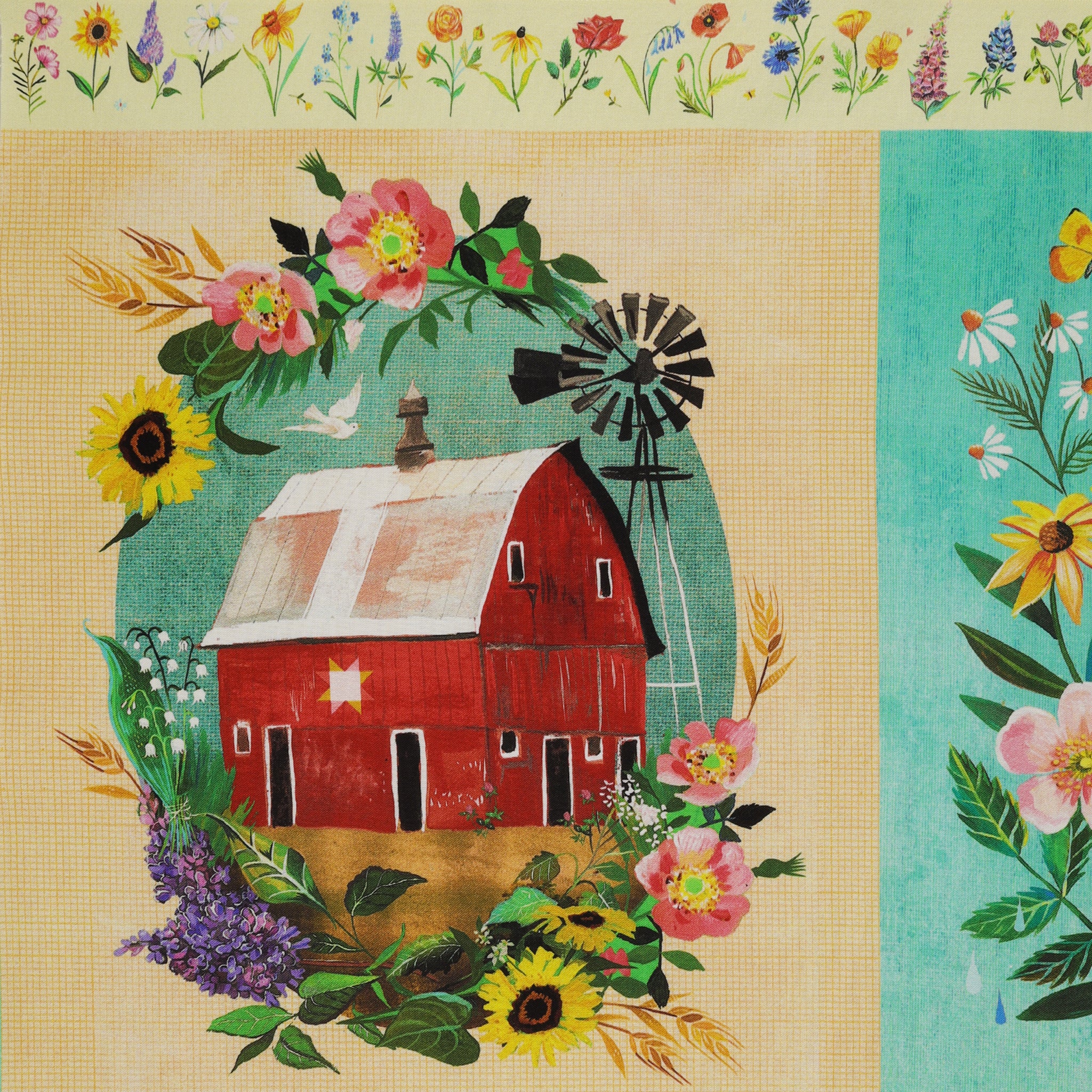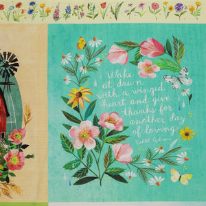 Bursting with color and storytelling, A Prairie Heart Panel captures the spirit of prairie living through Katie Daisy's artful brush. Each illustrated block feels like a window into a simpler time—cottages nestled among wildflowers, sunlit fields alive with songbirds, and tender messages of love and home. The artwork glows with heartfelt detail, celebrating nature's abundance and the beauty of handmade traditions. Perfect for quilts, wall hangings, or framed art, this panel invites you to piece together your own story of warmth, wonder, and the timeless rhythm of prairie life.