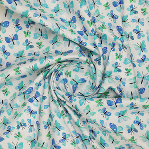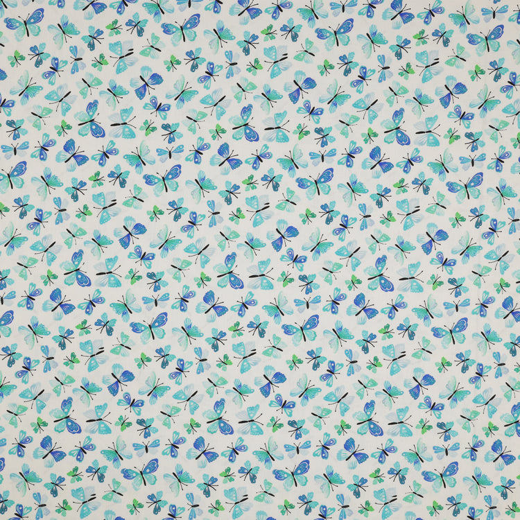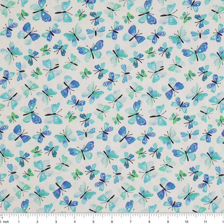 Cool and tranquil, Rustic Flutter Teal/White captures the elegance of butterflies gliding beneath a boundless sky. Their wings, painted in soft shades of teal, turquoise, and periwinkle, drift gracefully across a crisp white background, creating a soothing rhythm of motion and color. Each delicate form feels suspended in a moment of stillness, like sunlight filtering through open air. Perfect for quilts, apparel, or décor, this print brings a breath of calm beauty and the timeless wonder of nature in motion.