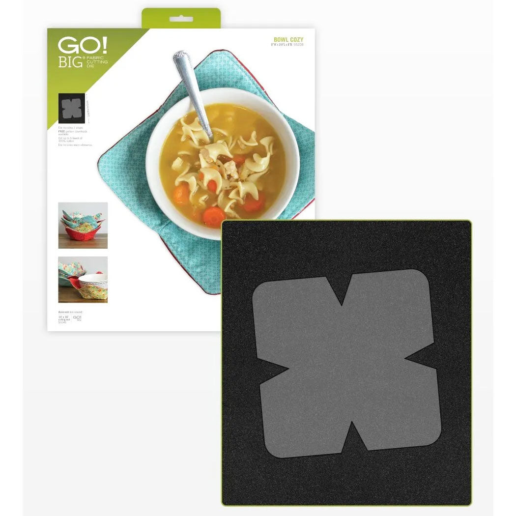 Accuquilt's GO! Big Bowl Cozy Die is the perfect project for soup season! These cozies are great for giving to loved ones, keeping them for yourself, or adding them to your shop to sell, and they're guaranteed to be popular sellers! This design is fat-quarter-friendly, and the fabric pattern options are limitless. Accuquilt's GO! Big Bowl Cozy Die ensures perfect cuts every time for a smooth and easy project! The Accuquilt GO! Cutting Mat 14" x 16" is required.