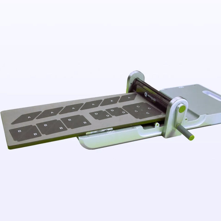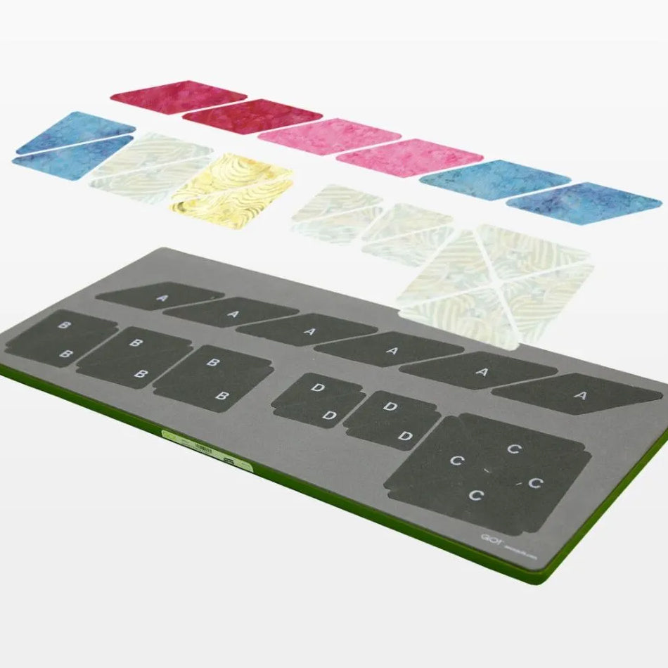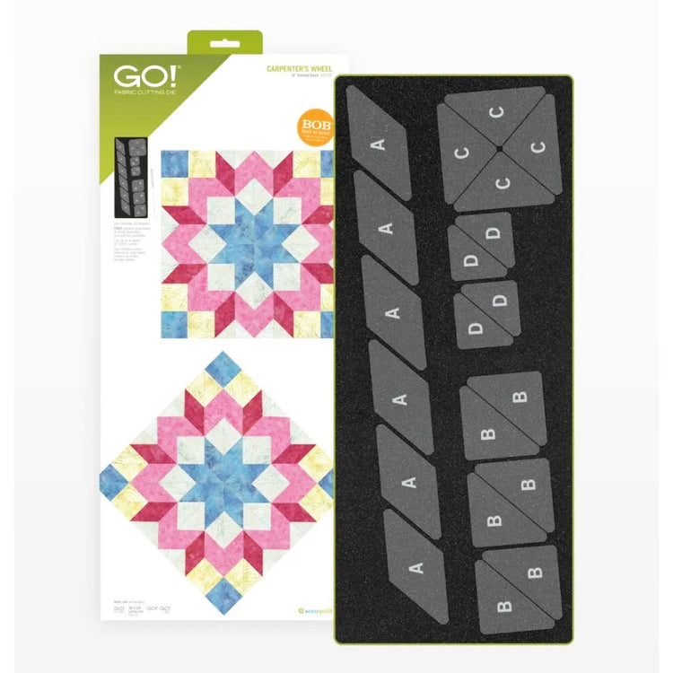 Some shapes can be challenging to cut accurately by hand, but the Accuquilt GO! Dies provide precise cuts every time. The Accuquilt GO! Carpenter's Wheel Die (18" Finished) is a Block on Board® (BOB®) die specifically designed to cut a complete 5-color, 18" block in one pass through the cutter. It features 20 basic shapes, specialized dog ears, and 1/4" seam allowances. This die also features screen-printed letters on the die foam for easier piecing and shape organization. The Accuquilt GO! Carpenter's Wheel Die (18" Finished) is perfect for using fabric scraps that would otherwise go to waste and is fat-quarter-friendly. The Accuquilt GO! Cutting Mat 10" x 24" is required.