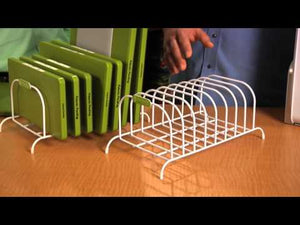 The Accuquilt GO! Die Storage Rack is the ideal solution to maintain the organization of your fabric cutting dies and mats! The vinyl-covered wire rack protects and holds up to eight dies and mats. This storage system is compact and perfect for keeping your go-to dies at reach without taking up a lot of space at your table featuring protective feet to prevent scratching surfaces. Each divider in the Accuquilt GO! Die Storage Rack will store one die and cutting mat.