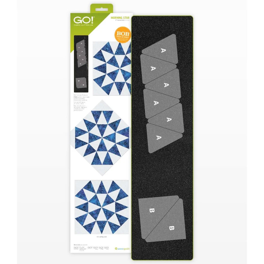Some shapes can be challenging to cut accurately by hand, but the Accuquilt GO! Dies provide precise cuts every time. The Accuquilt GO! Morning Star Die (12" Finished) is a Block on Board® (BOB®) die specifically designed to cut a 2-color, 12" block in just one pass through the cutter. It features 2 basic shapes, specialized dog ears, and 1/4" seam allowances. This die also features screen-printed letters on the die foam for easier piecing and shape organization. The Accuquilt GO! Morning Star Die (12" Finished) is perfect for using fabric scraps that would otherwise go to waste and is fat-quarter-friendly.