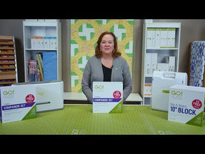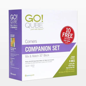 The Accuquilt GO! Qube 10" Companion Set - Corners is a continuation of the 1-8 die numbering system from the GO! Qube 10" Mix & Match Block Set, expanding your GO! Qube system. It features 4 GO! Dies, a cutting mat, a pattern book including 10 patterns, a step-by-step instructional DVD, and serves as its own innovative storage system! The 4 shapes included are labeled 9, 10, 11.1, and 12.1. Together, these 4 fundamental shapes can be used to create 72 additional mix & match blocks. Pair with the GO! Qube Mix & Match 10" Block Set and the GO! Qube 10" Companion Set - Angles and accumulate 216 block designs to choose from! Some shapes can be challenging to cut accurately by hand, but the Accuquilt GO! Dies provide precise cuts every time.
