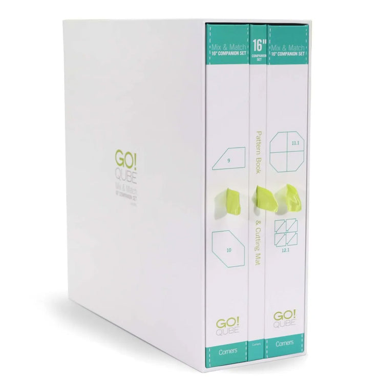 The Accuquilt GO! Qube 16" Companion Set - Corners is a continuation of the 1-8 die numbering system from the GO! Qube 16" Mix & Match Block Set, expanding your GO! Qube system. It features 4 GO! Dies, a cutting mat, a pattern book including 10 patterns, a step-by-step instructional DVD, and serves as its own innovative storage system! The 4 shapes included are labeled 9, 10, 11.1, and 12.1. Together, these 4 fundamental shapes can be used to create 72 additional mix & match blocks. Pair with the GO! Qube Mix & Match 16" Block Set and the GO! Qube 16" Companion Set - Angles and accumulate 216 block designs to choose from! Some shapes can be challenging to cut accurately by hand, but the Accuquilt GO! Dies provide precise cuts every time.