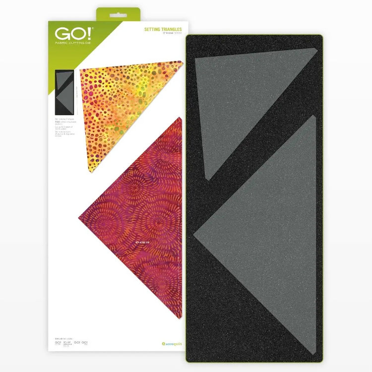 Some shapes can be challenging to cut accurately by hand, but the Accuquilt GO! Dies provide precise cuts every time. The Accuquilt GO! Setting Triangles Die (12" Finished) features specialized dog-ears and includes 1/4" seam allowances, ensuring easy alignment and piecing. Expand your quilt design options and make on-point quilts with ease! The GO! Setting Triangles 12" Finished Die includes the corner and side setting triangles for creating 12" finished on-point quilts.