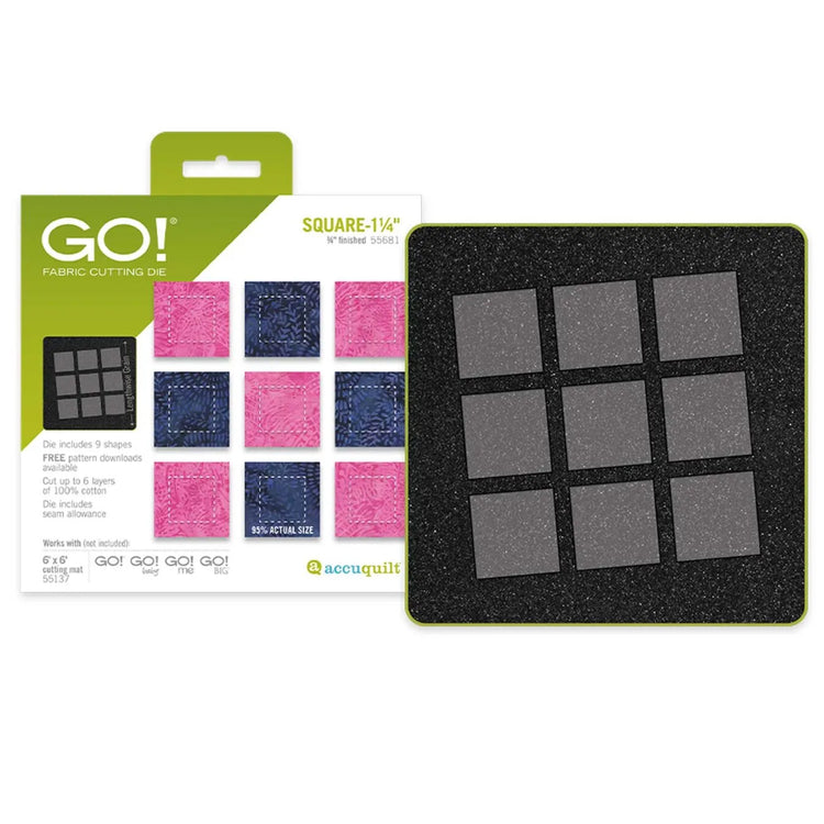 Squares are a fundamental building block of quilting and can be challenging to cut accurately by hand. The Accuquilt GO! Square Dies are available in various sizes for maximum design possibilities! From 1-1/4" (1" Finished) to 8-1/2" (8" Finished), Accuquilt GO! Dies ensure exact cuts every time! The Accuquilt GO! Square Dies cut cleanly through multiple layers of fabric at once and are perfect for stash busting, scrappy quilts, cutting charm squares, checkerboard layouts, appliqué background squares, and so much more! The Accuquilt GO! Cutting Mats are required.