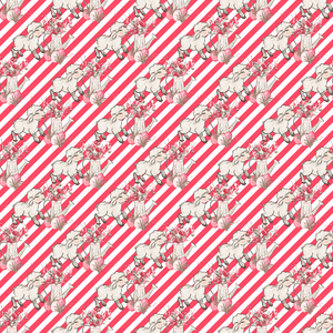 Allover Easter Flowers & Lamb on Stripes Fabric - Red