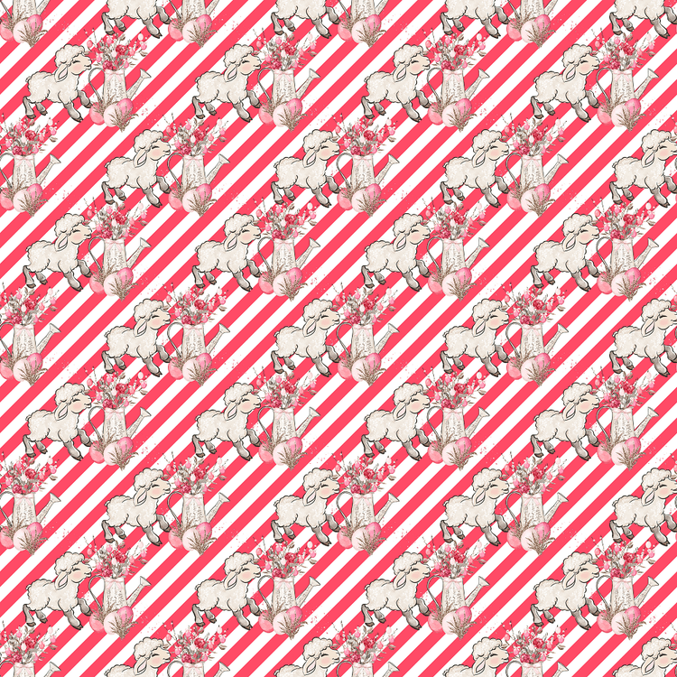 The Red Allover Easter Flowers & Lamb on Stripes Fabric is part of the Easter Lamb Fabric Collection printed by Sew Creative Fabrics. Digitally Printed on 100% cotton.