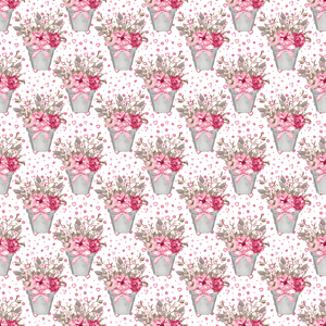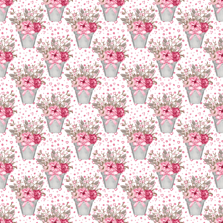 Allover Floral Easter Buckets on Hearts Fabric - Pink