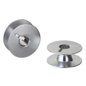 Aluminum bobbins are considered the Top-End "Luxury Bobbins". They offer less resistance which translates to less drag to the bobbin thread tension. The metric measurements on these bobbins are 21mm in diameter and 8.5mm deep. These bobbins have a notch in the center for the bobbin winder.