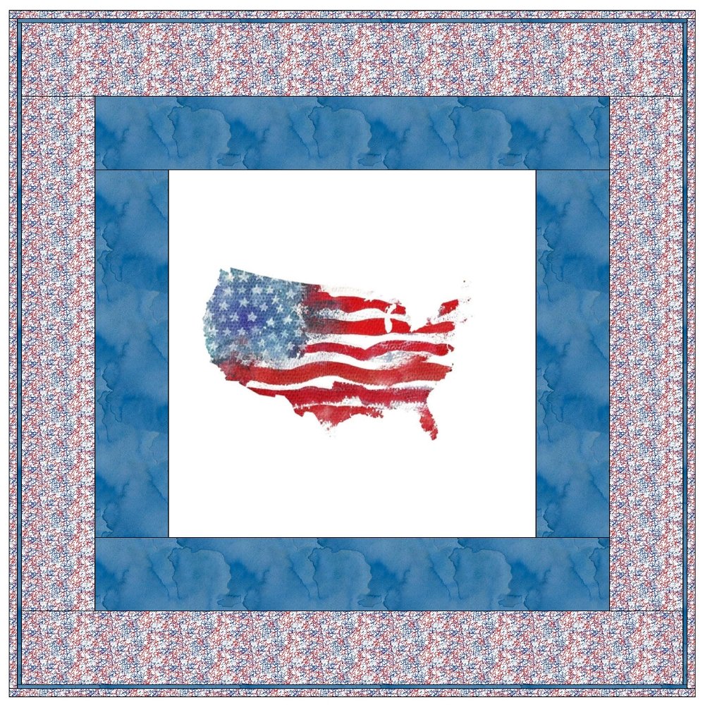 The America Wall Hanging includes everything that you need to make the quilt - the instructions and a total of 3 1/2 yards of fabric and a 23" panel. It has two borders and is finished with a flange binding. Batting is sold separately. The finished size of this quilt is 42" x 42".