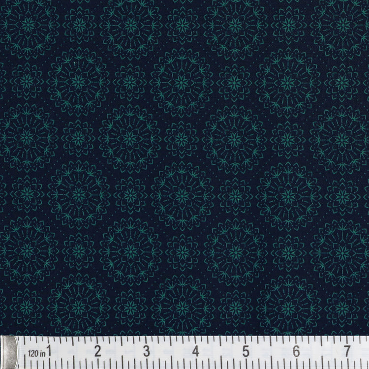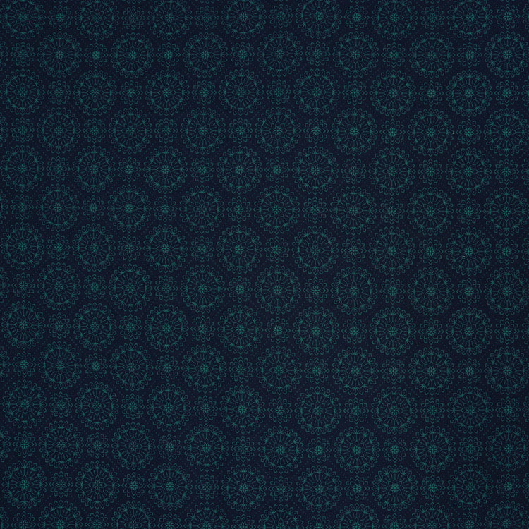 Meadowsweet Indigo is rich, refined, and intricately detailed. Its deep navy background sets the stage for lacy medallions sketched in soft teal, evoking hand-embroidered doilies or glowing starbursts in the night sky. This fabric delivers stunning visual texture with a calm, classic palette—perfect for traditional quilts, dark backgrounds, or elegant contrast blocks. Whether used as a dramatic focal print or a grounding blender, Meadowsweet Indigo adds depth and artistry to any sewing project.