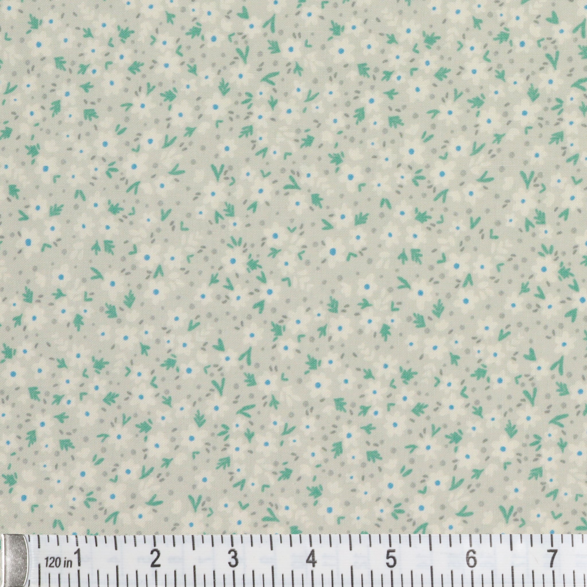 Paperwhites Cloud is a gentle, whisper-soft print that adds a subtle floral touch without overwhelming your palette. Tiny white blossoms with pale blue centers scatter across a warm, creamy ground, accompanied by delicate green sprigs and soft gray dots that mimic a misty meadow. Its tonal, low-contrast design makes it ideal for background work, blending beautifully behind bolder prints or lending texture to sashing, borders, and quilt blocks.