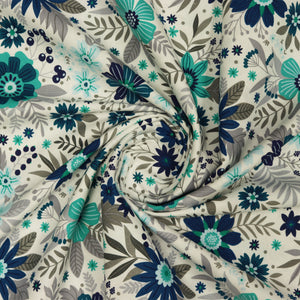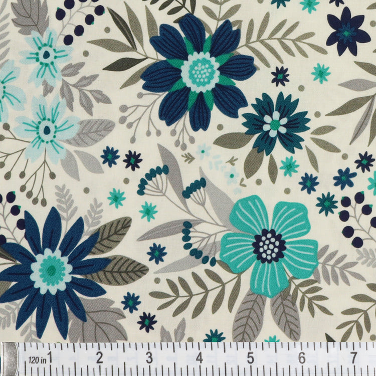 Wildflowers Indigo is a lush, all-over floral print that brings the feeling of a blooming field straight to your sewing table. Deep indigos, teals, aquas, and smoky grays mingle across a warm cream background, creating a rich tapestry of layered blooms, leafy branches, and whimsical berry sprigs. With florals ranging in size and shape—from dainty accent blossoms to dramatic, stylized blooms—this print offers dynamic movement and visual depth. Its balanced scale makes it an excellent choice for both piecing and backing, effortlessly adding bold flair or soft sophistication depending on how you use it. Wildflowers Indigo is a floral lover’s dream—vibrant, versatile, and full of natural charm.