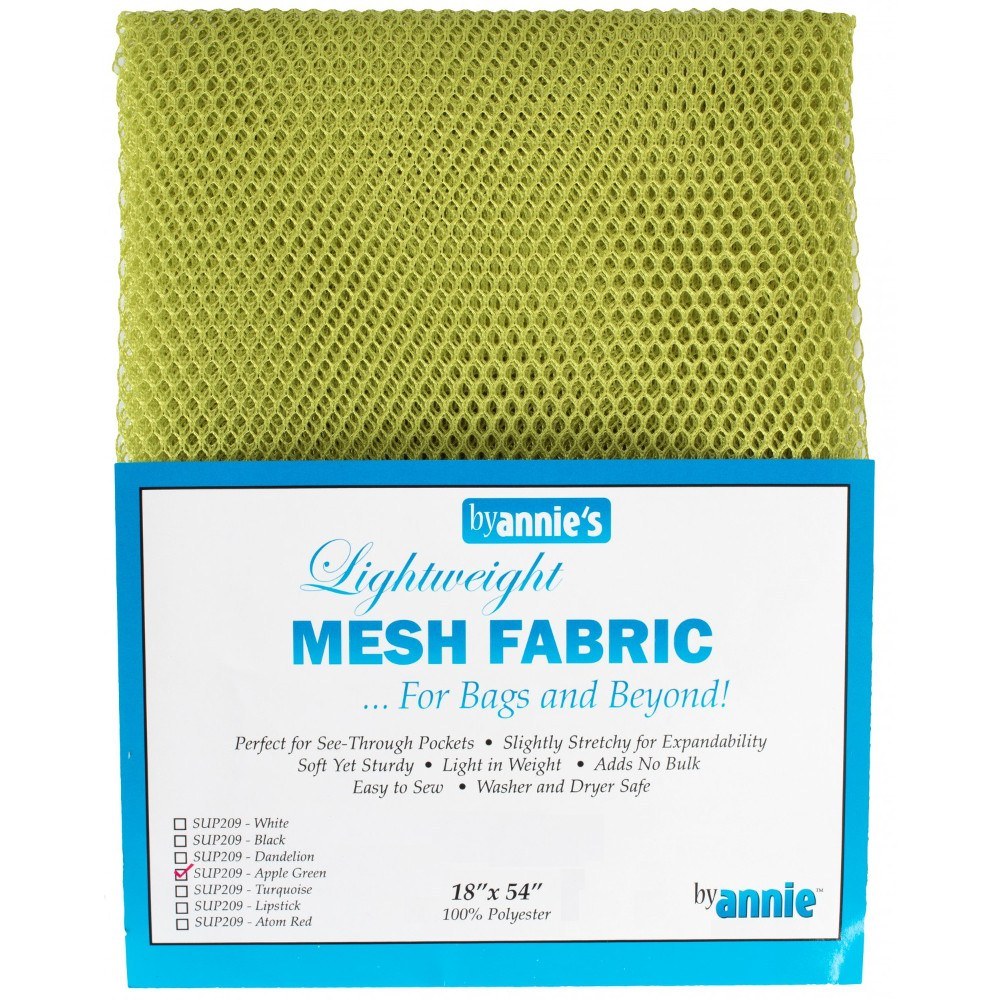Annie's Lightweight Mesh Fabric is made of 100% polyester and is specially coated to be less slippery and easy to sew. This Lightweight Mesh Fabric is ideal for apparel, crafts, and more. Annie's Lightweight Mesh Fabric is slightly stretchy, soft yet sturdy, and washer and dryer safe. Each pack of mesh includes one 18" x 54" piece.