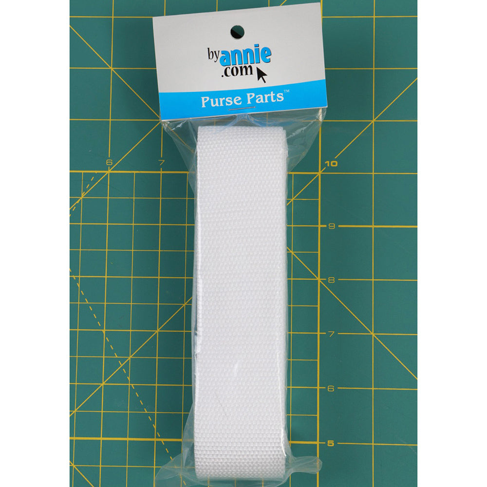 Annie's Polypro Strapping is great for purse pattern handles and other crafts. This durable webbing measures 1-1/2" wide by 3-yards long, so you should have more than enough to complete multiple projects. Made of polypropylene, Annie's Stapping is resistant to water and tearing. Available in two colors: black and white.
