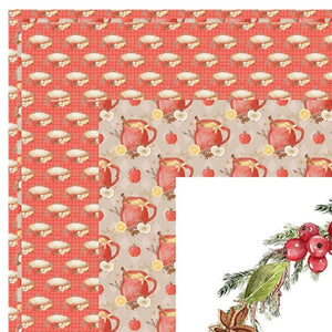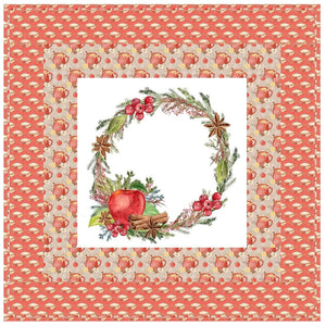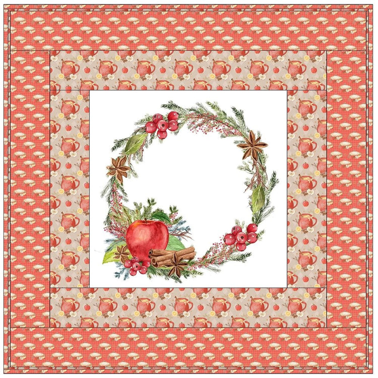 The Apple Cinnamon Pie With Cider Wall Hanging includes everything that you need to make the quilt - the instructions and a total of 4 yards of fabric and a 23" panel. It has two borders and is finished with a flange binding. Batting is sold separately. The finished size of this quilt is 42" x 42".