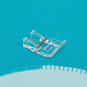 Managing curves and corners is easy when using the clear applique foot. With a shorter toe, better visibility, and an alignment marking on the foot, aligning with the fabric edge while stitching around a design is seamless.